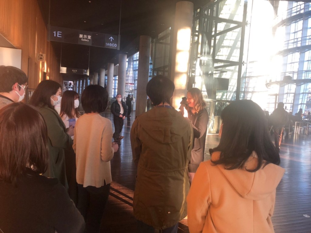 見学に際しては、本ゼミの博士前期課程に在籍中で、ハンガリーのジャポニスムを専門に研究しているチェレシネーシ・アンナさんに解説してもらいました(写真)。