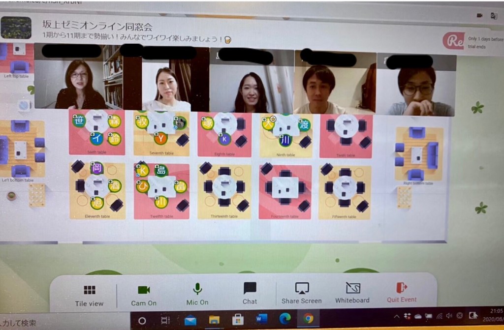 8月22日、坂上ゼミオンライン同窓会を行いました。1期から現役学生である11期・12期まで約40名が参加し、Remoというツールを用いて交流を楽しみました。